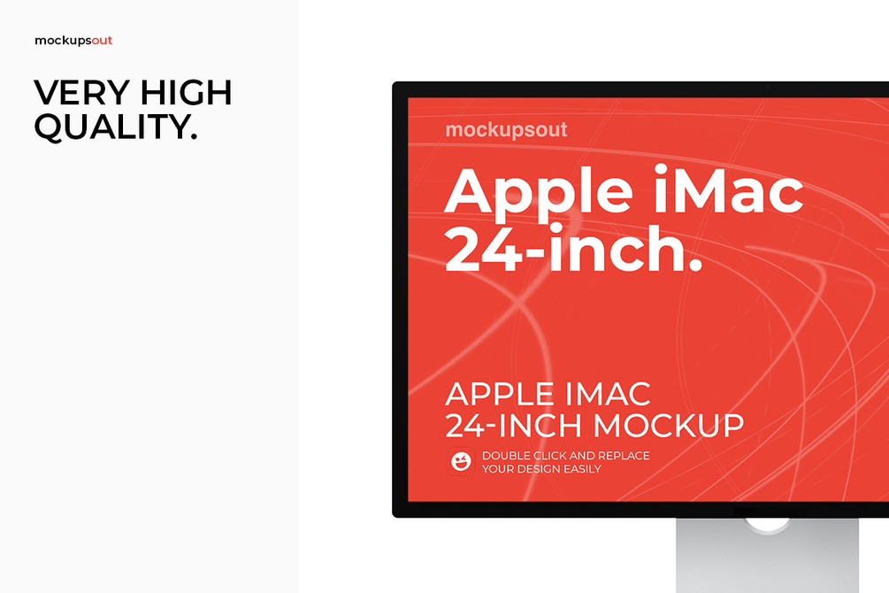 Apple iMac 24-inch PSD Mockup Template to showcase your custom design, includes 4 PSD Files.